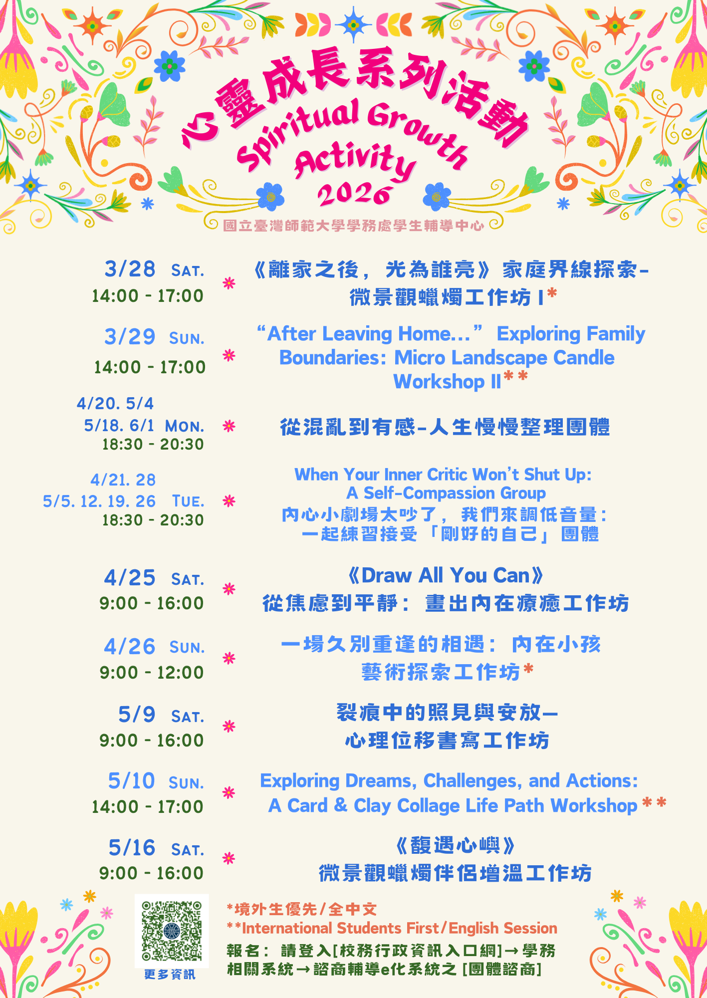 Workshops are similar to group counseling. Under the leadership of professional psychologists, participants engage in specific themed activities. They share internal experiences and feelings through interactions, thereby increasing self-awareness and promoting self-growth. The difference is that workshop activities usually held in one day and last 6-8 hours.