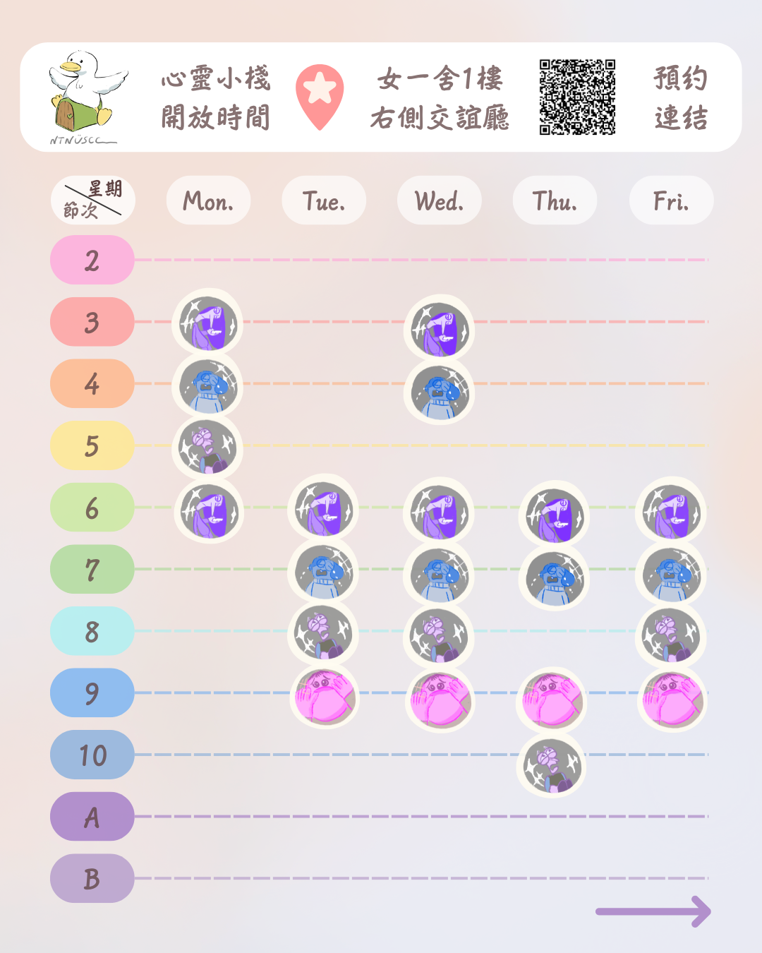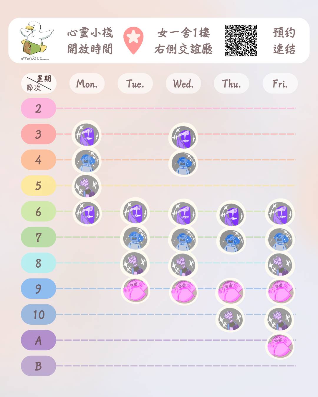 3. 心靈小棧每週值班2小時,每學期值班至少28小時。