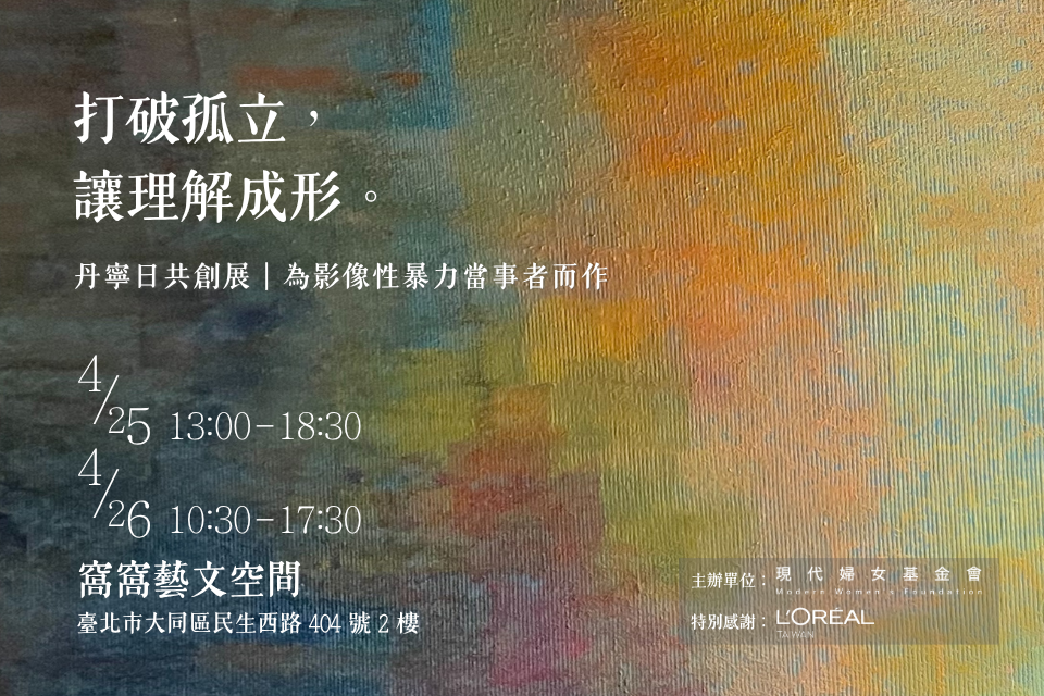【轉知】現代婦女教育基金會「打破孤立,停止影像性暴力」丹寧日倡議海報與共創展活動 閱讀全文 »
