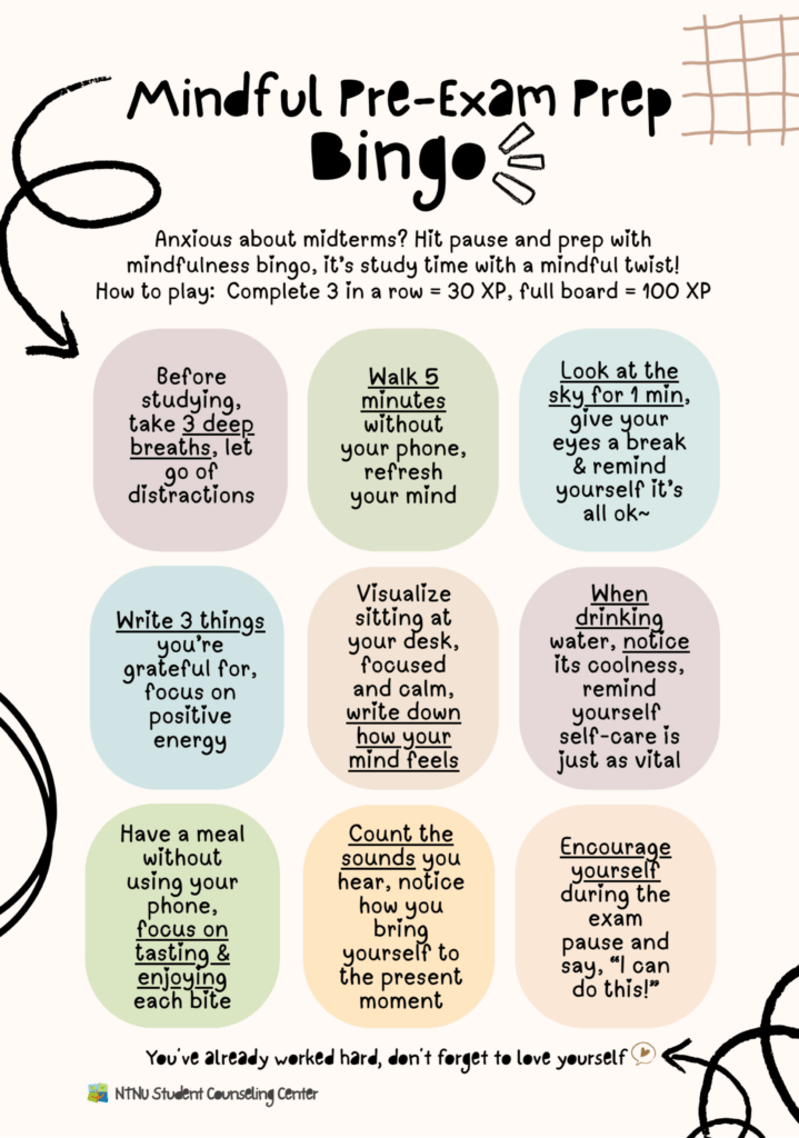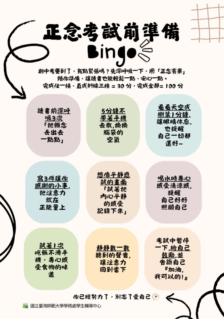 【資源】正念考試前準備Bingo Mindful Pre-Exam Prep Bingo