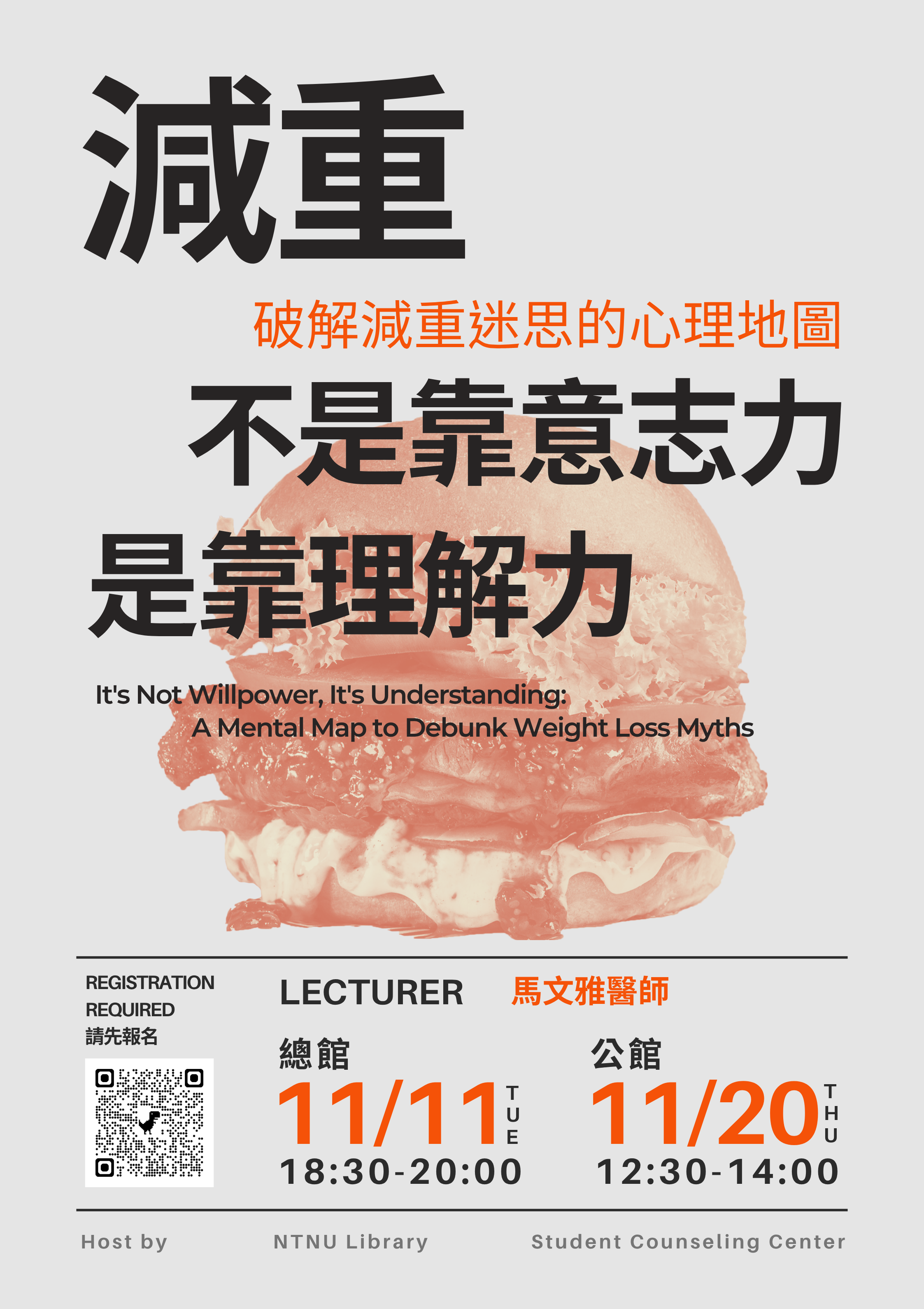 【活動】114學年第1學期 閱讀X心理講座-減重-破解減重迷思的心理地圖-不是靠意志力,是靠理解力Mental health promotion, Latest news, Activities / 2025 年 10 月 13 日