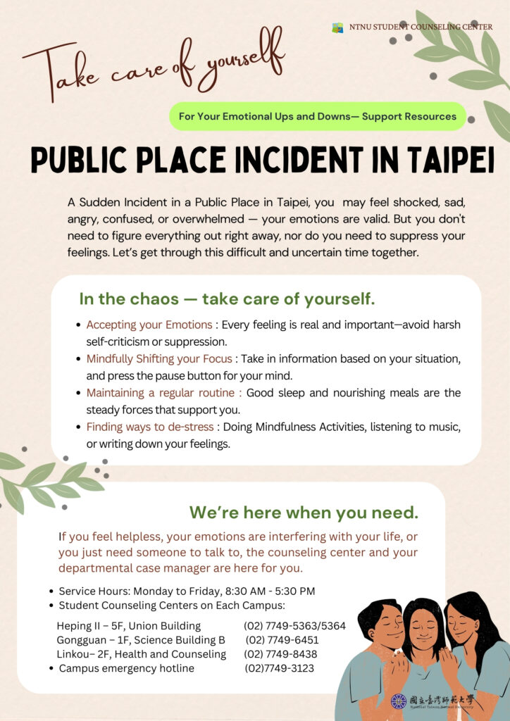 【Resource】Public Place Incident In Taipei – For Your Emotional Ups and Downs – Support Resource